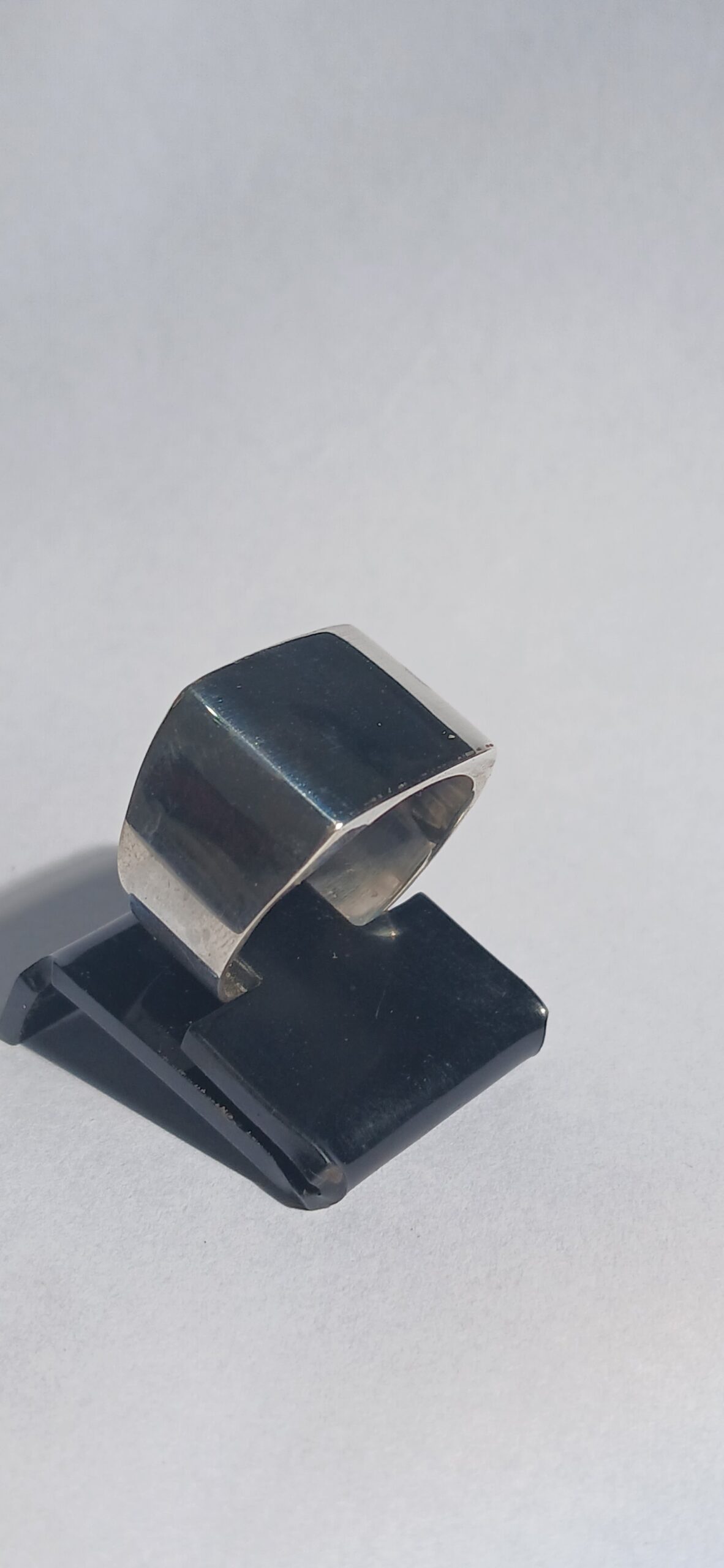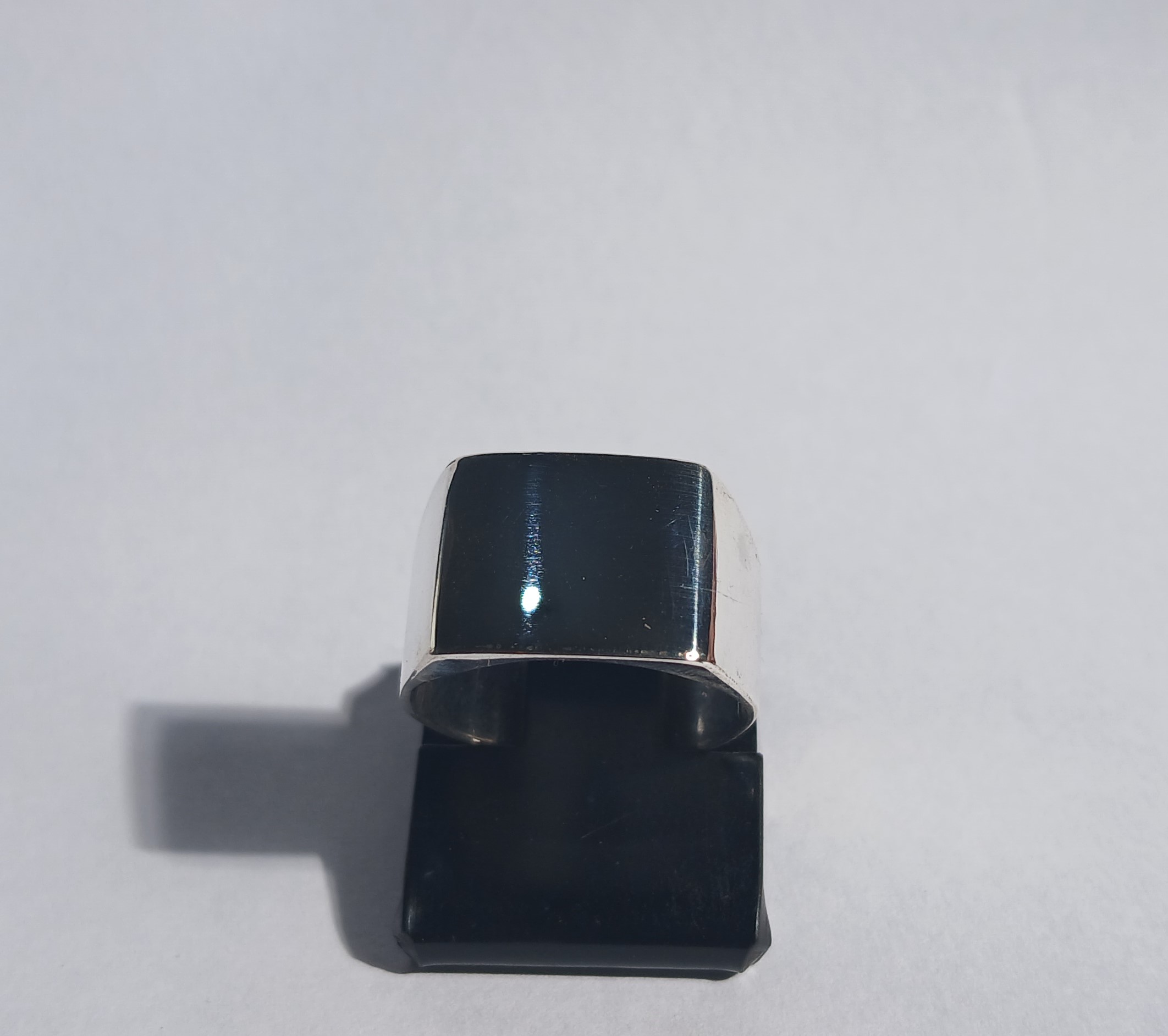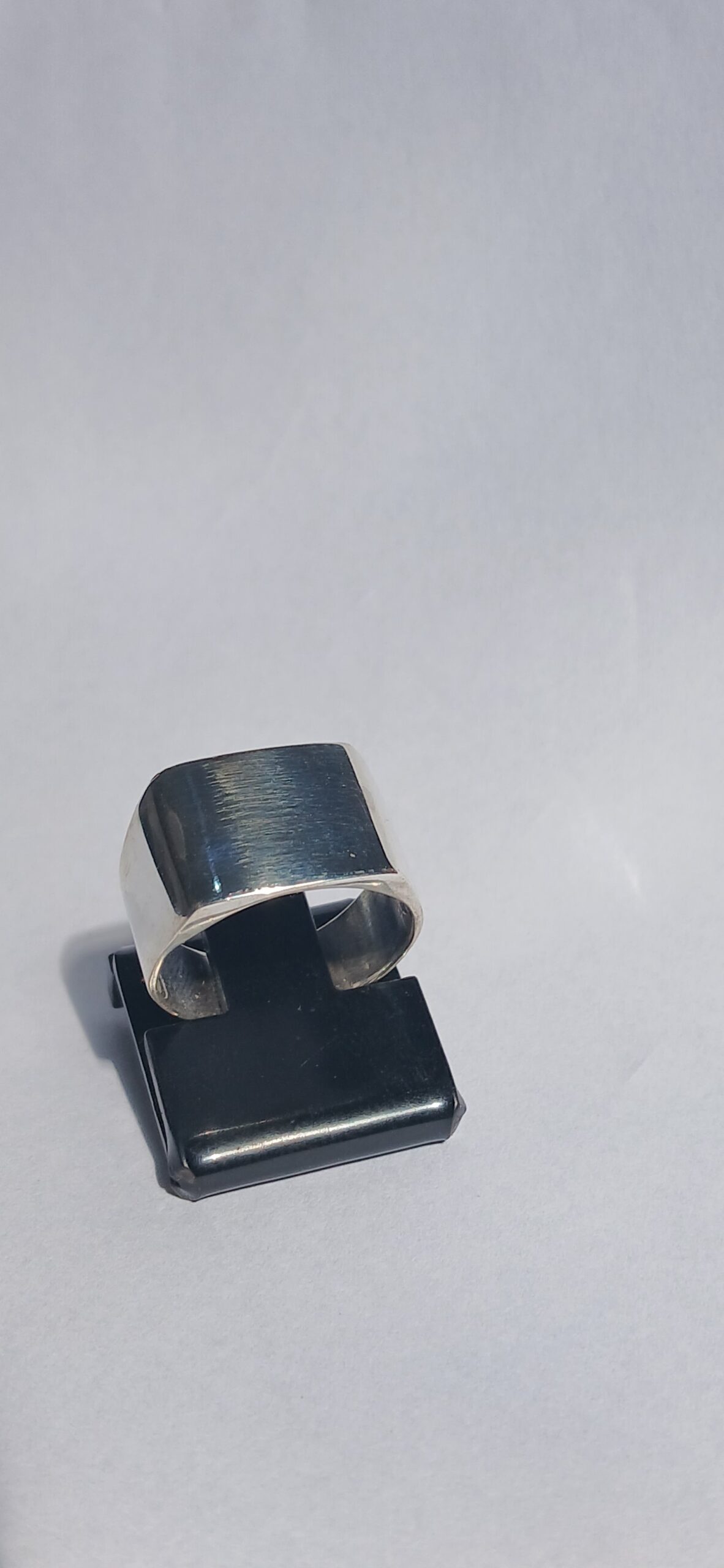 Anel de prata sinete quadrado produzido artesanalmente, com aro escolhido no produto e acabamento cuidadoso.