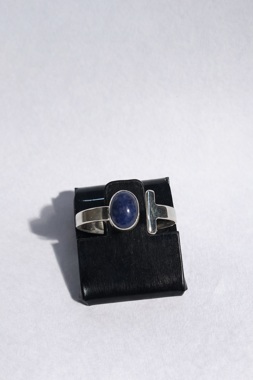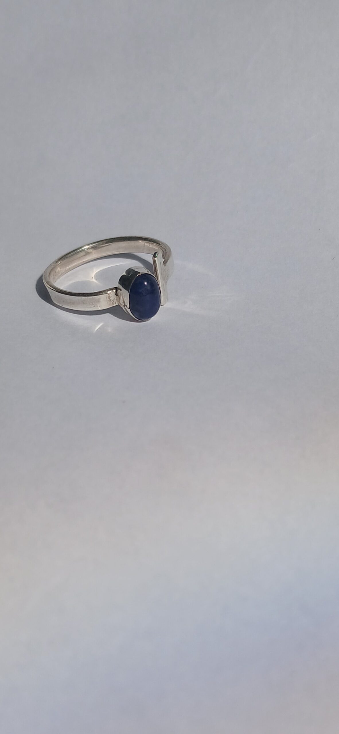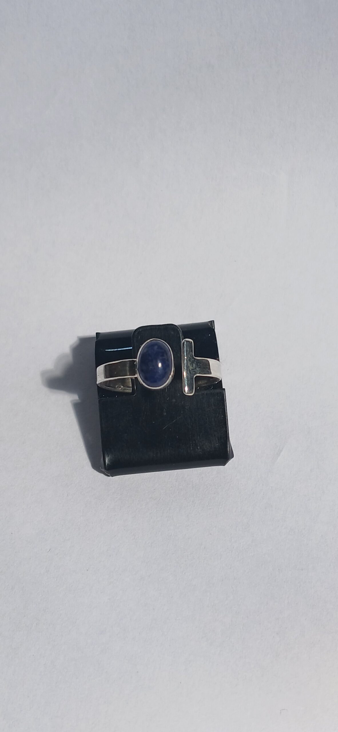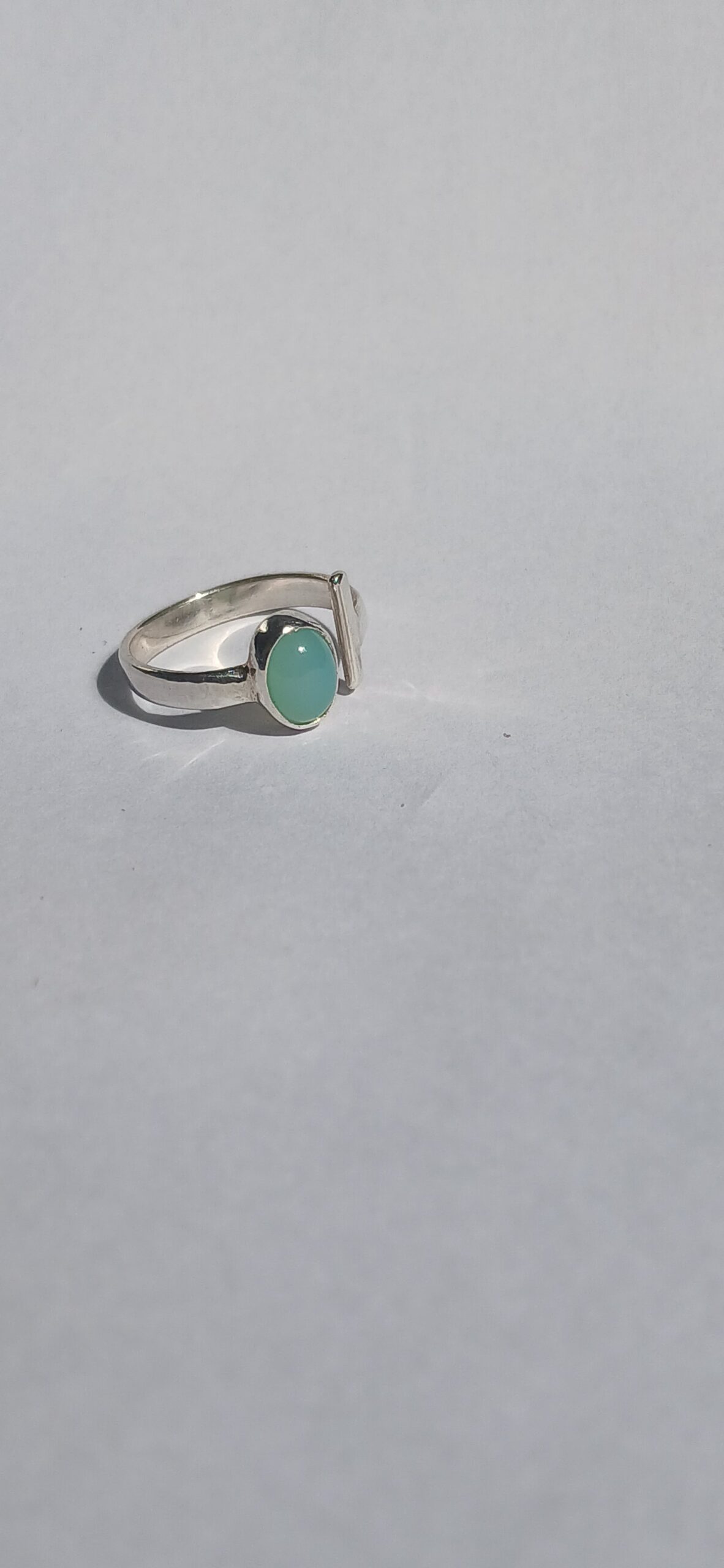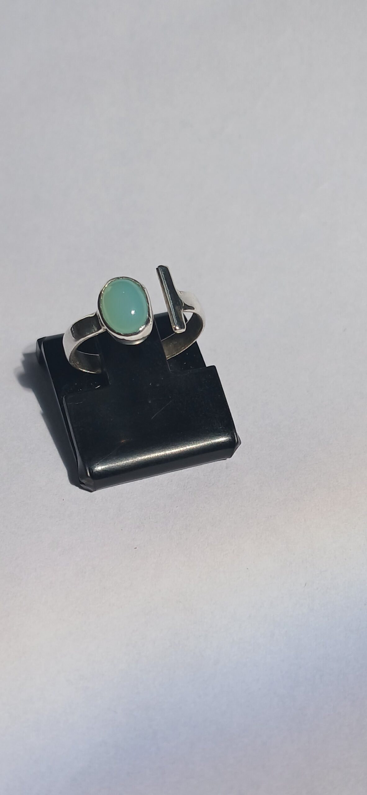 Anel ajustável em prata com pedra natural, tratado inicialmente como vitrine/consulta até padronizar pedra, medida e acabamento.